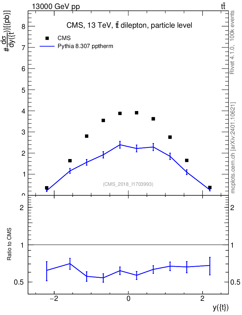 Lines: data, pythia8 8.307 pptherm |