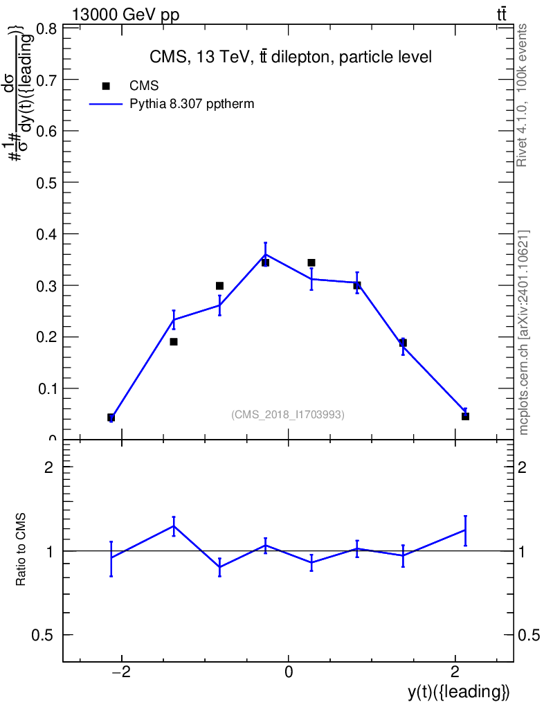 Lines: data, pythia8 8.307 pptherm |