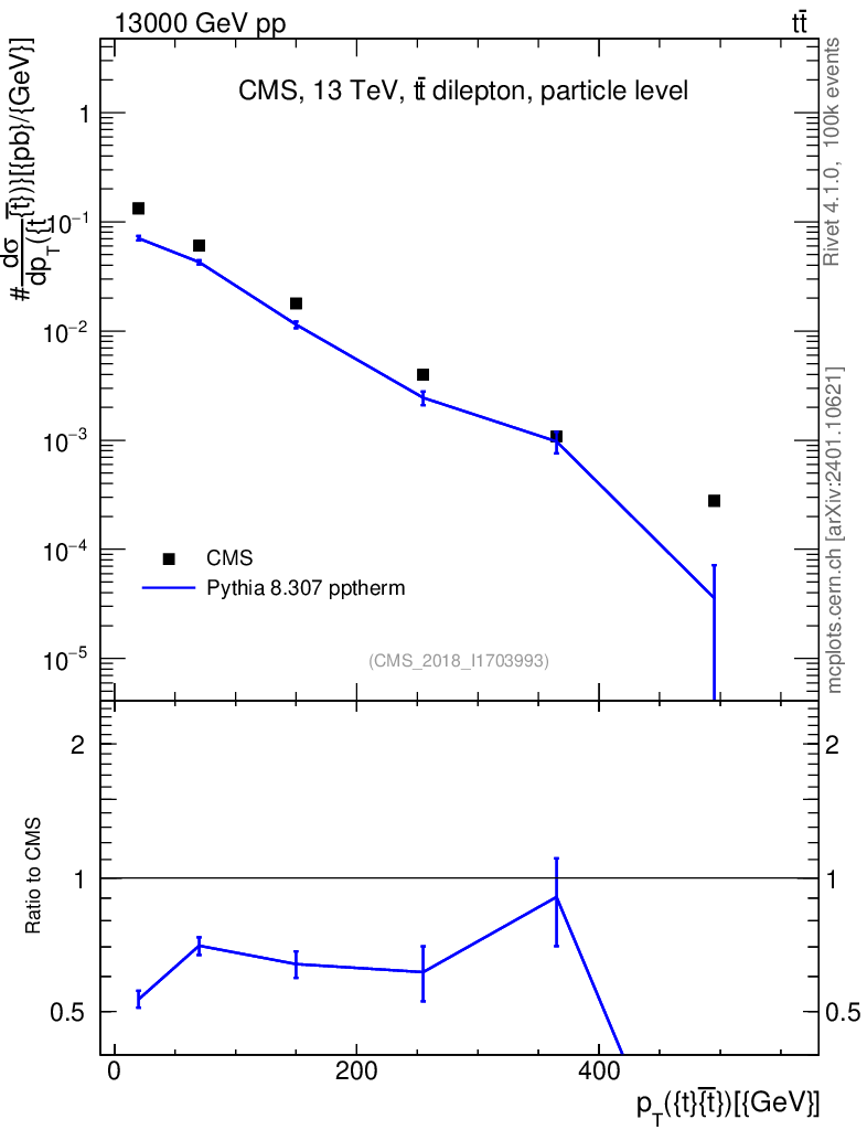 Lines: data, pythia8 8.307 pptherm |