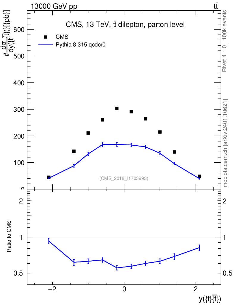 Lines: data, pythia8 8.315 qcdcr0 |