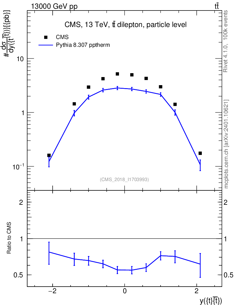 Lines: data, pythia8 8.307 pptherm |