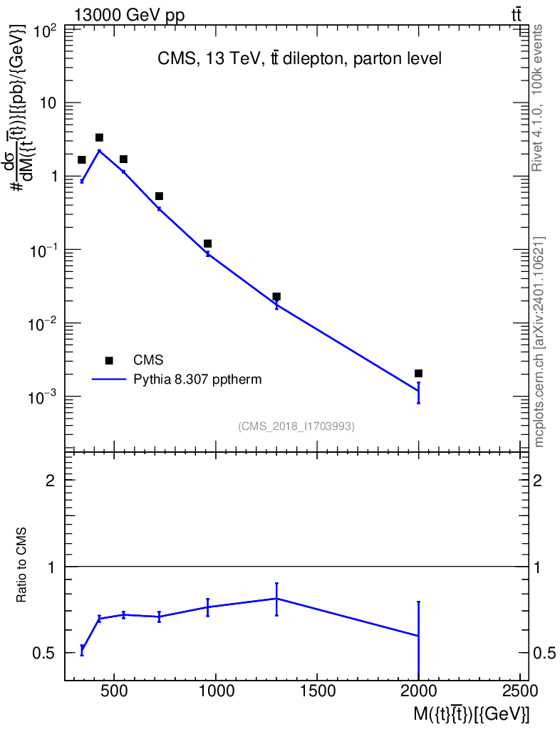 Lines: data, pythia8 8.307 pptherm |