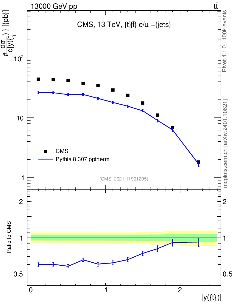 Lines: data, pythia8 8.307 pptherm |