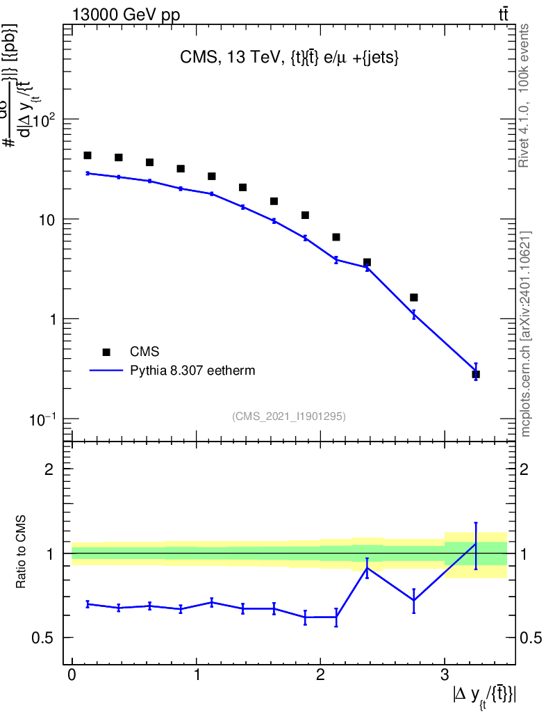 Lines: data, pythia8 8.307 eetherm |