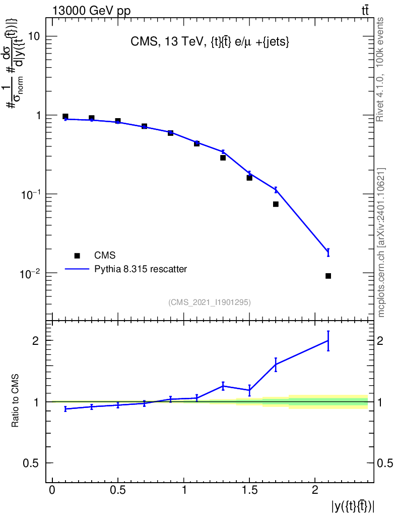Lines: data, pythia8 8.315 rescatter |