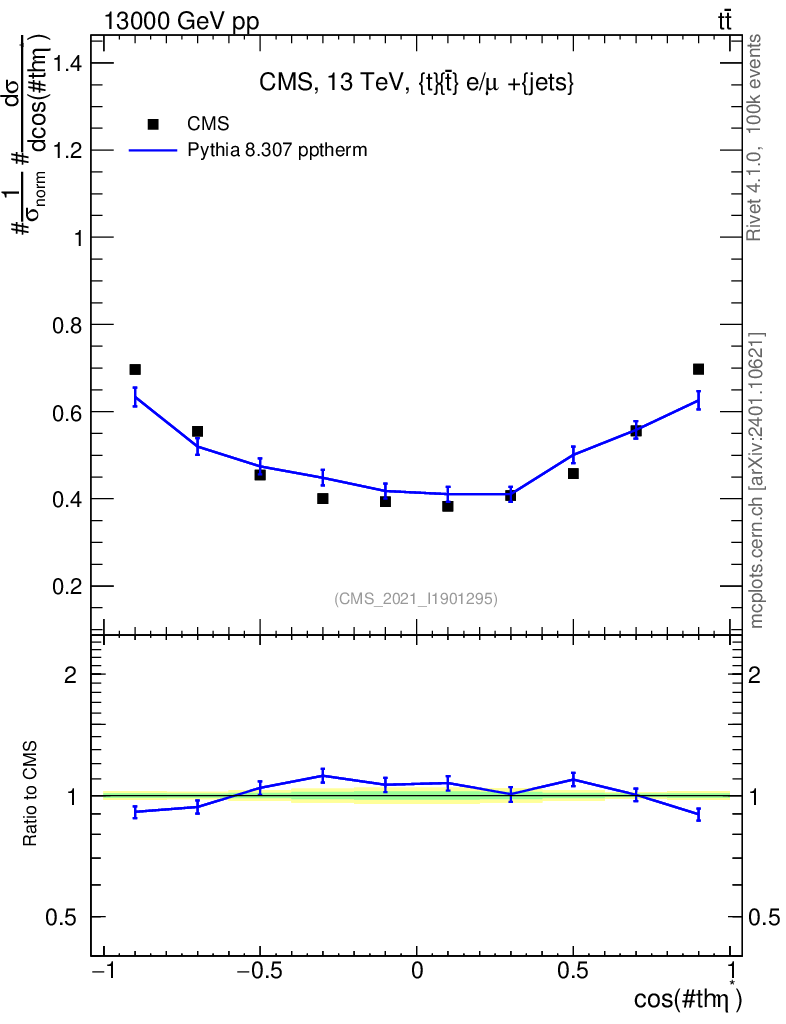 Lines: data, pythia8 8.307 pptherm |