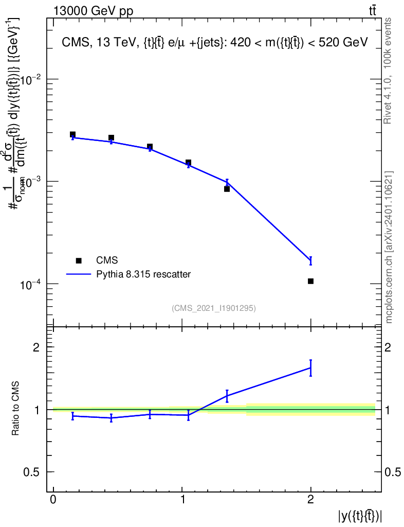 Lines: data, pythia8 8.315 rescatter |