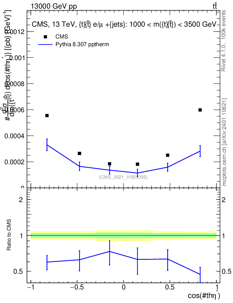 Lines: data, pythia8 8.307 pptherm |