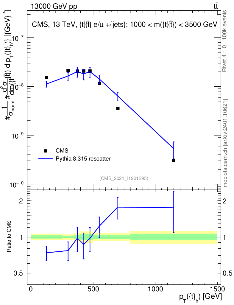 Lines: data, pythia8 8.315 rescatter |