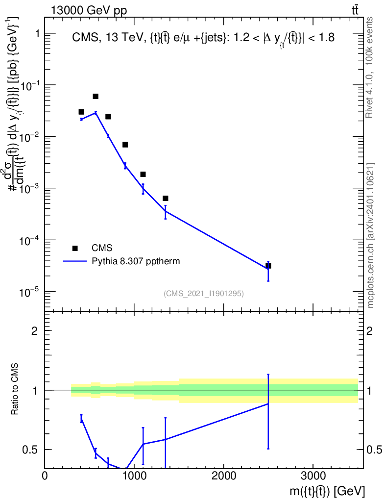 Lines: data, pythia8 8.307 pptherm |