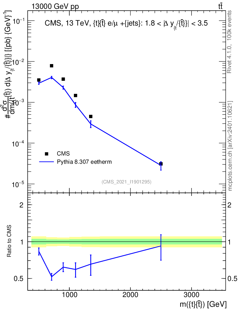 Lines: data, pythia8 8.307 eetherm |