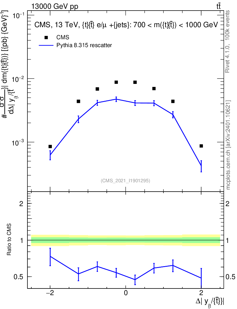 Lines: data, pythia8 8.315 rescatter |