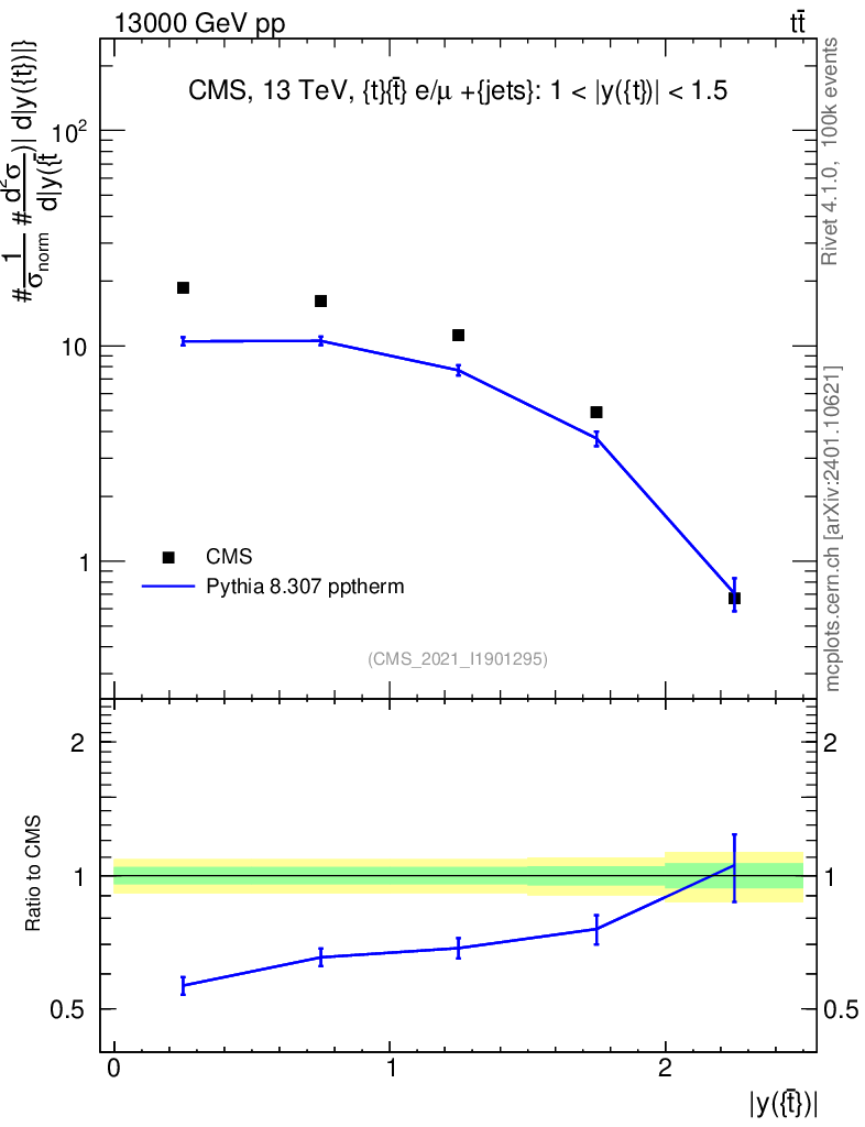 Lines: data, pythia8 8.307 pptherm |