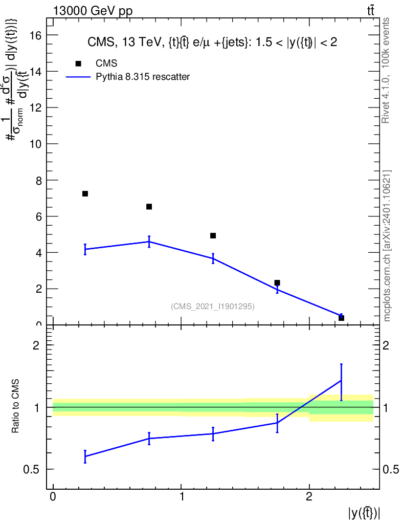 Lines: data, pythia8 8.315 rescatter |