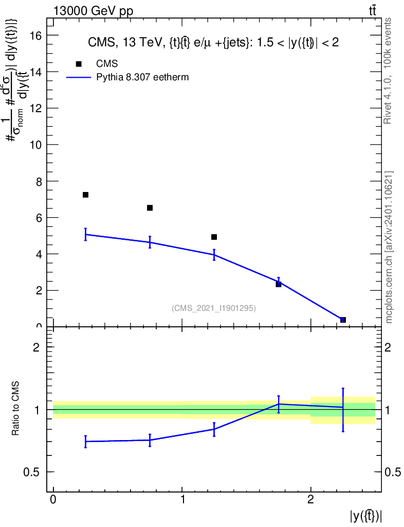 Lines: data, pythia8 8.307 eetherm |