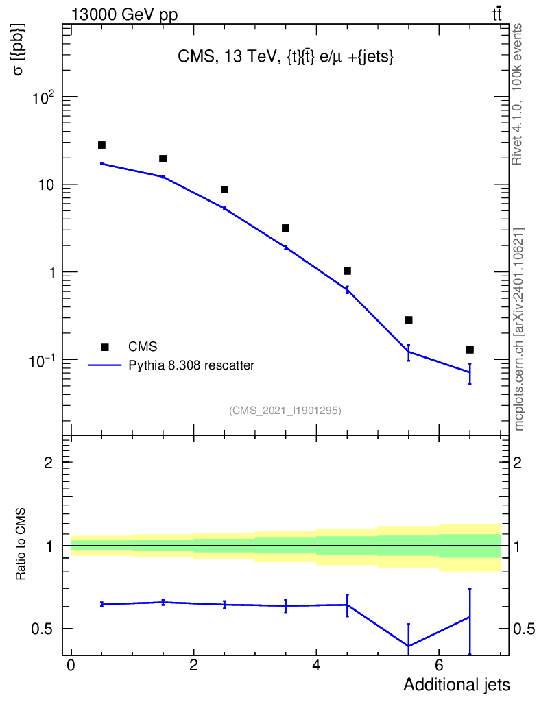Lines: data, pythia8 8.308 rescatter |