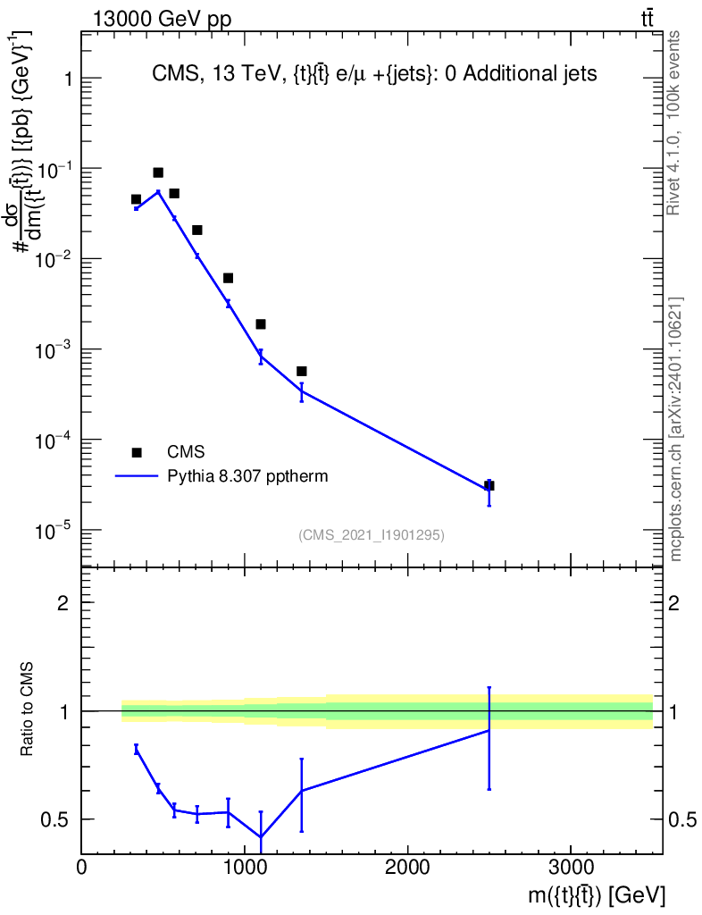 Lines: data, pythia8 8.307 pptherm |