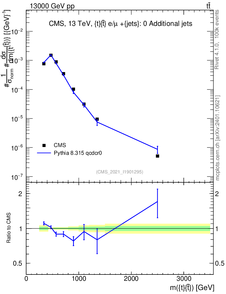 Lines: data, pythia8 8.315 qcdcr0 |