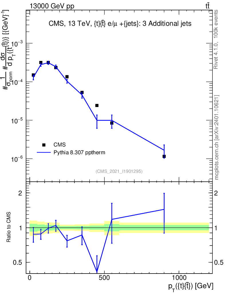 Lines: data, pythia8 8.307 pptherm |