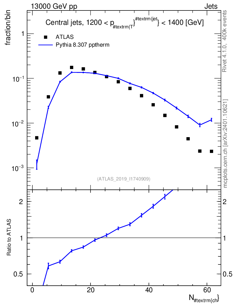 Lines: data, pythia8 8.307 pptherm |