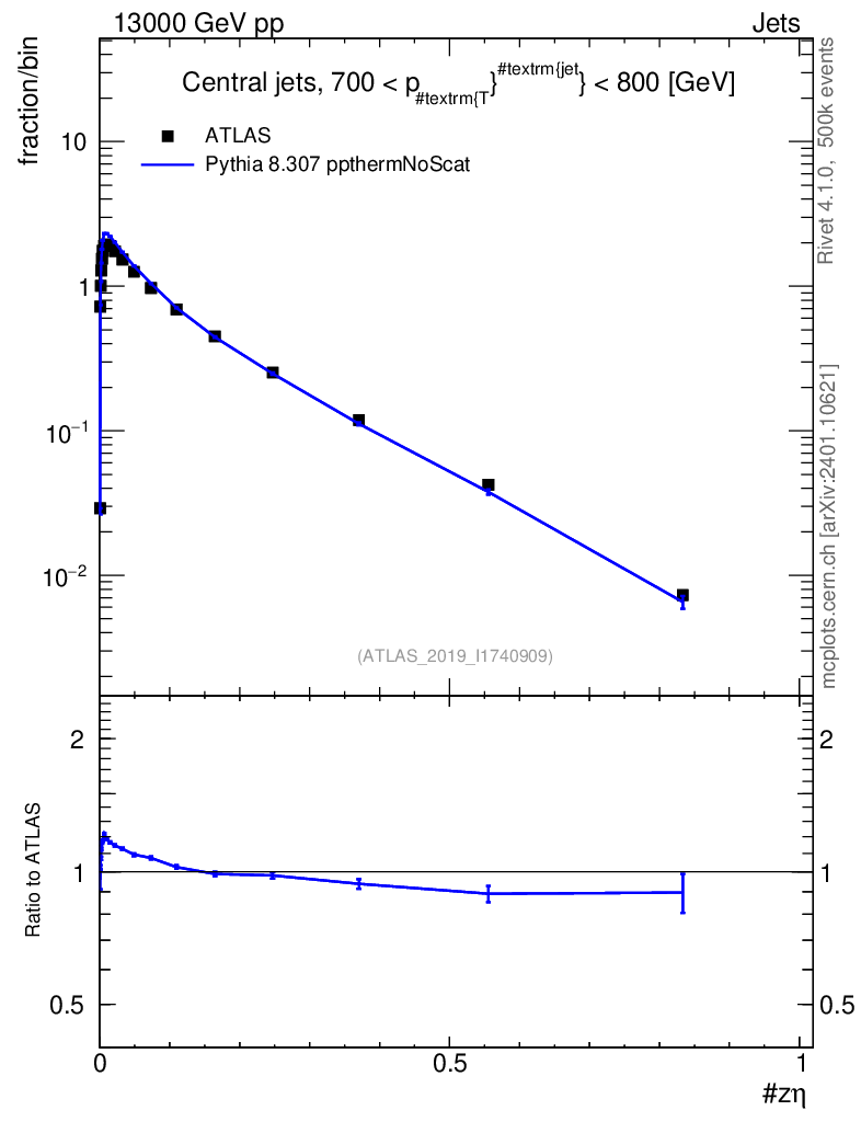 Lines: data, pythia8 8.307 ppthermNoScat |