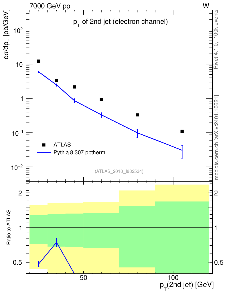 Lines: data, pythia8 8.307 pptherm |