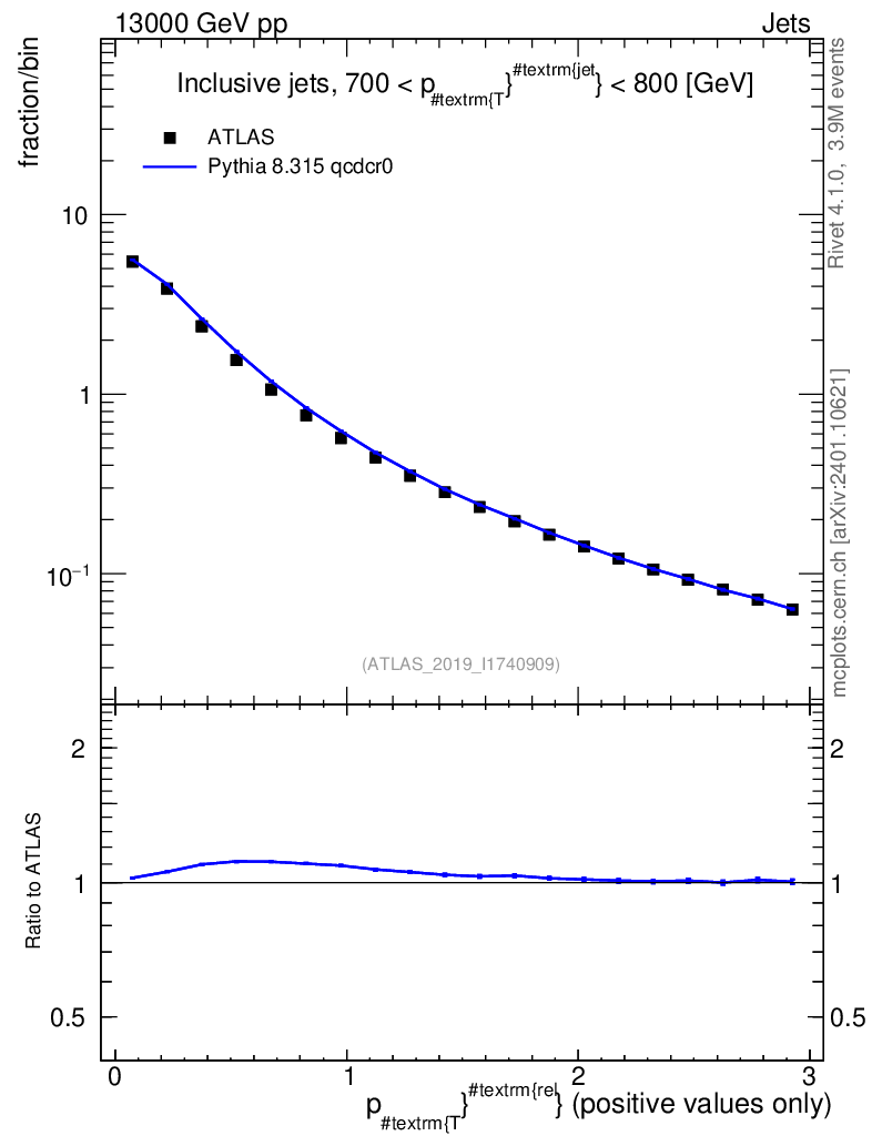 Lines: data, pythia8 8.315 qcdcr0 |