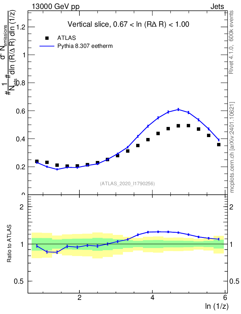 Lines: data, pythia8 8.307 eetherm |