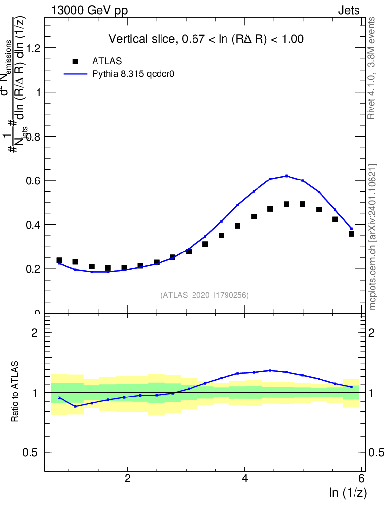 Lines: data, pythia8 8.315 qcdcr0 |