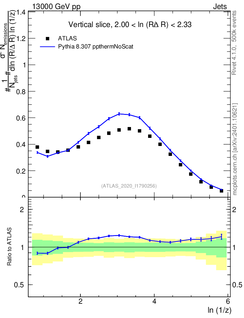 Lines: data, pythia8 8.307 ppthermNoScat |