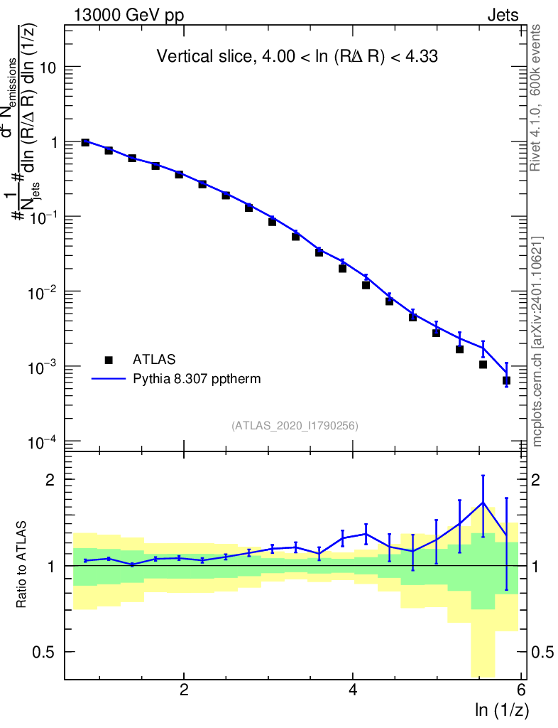 Lines: data, pythia8 8.307 pptherm |