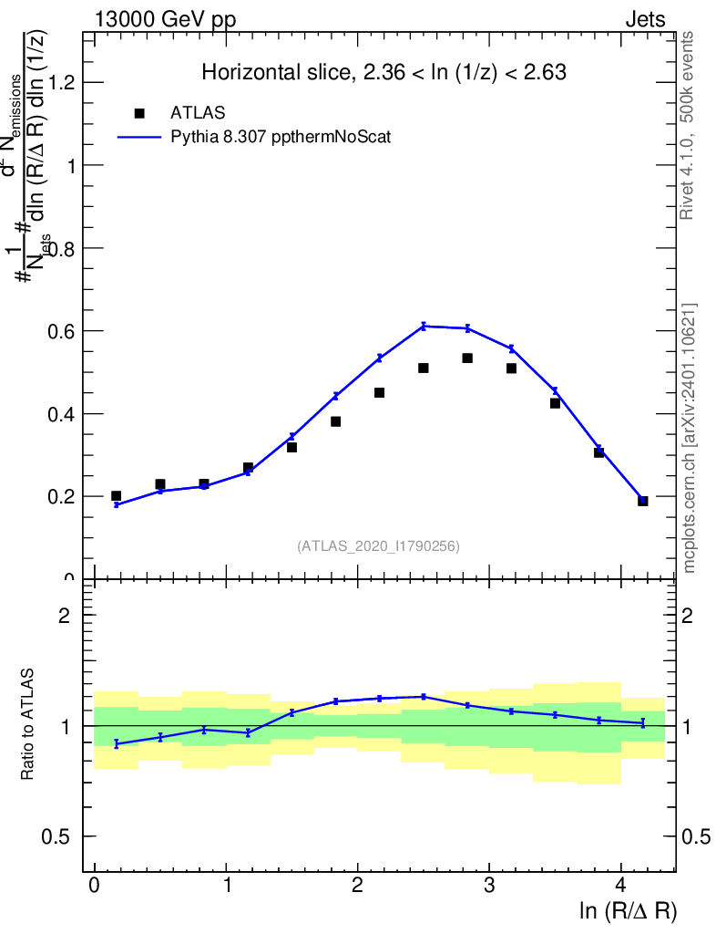 Lines: data, pythia8 8.307 ppthermNoScat |