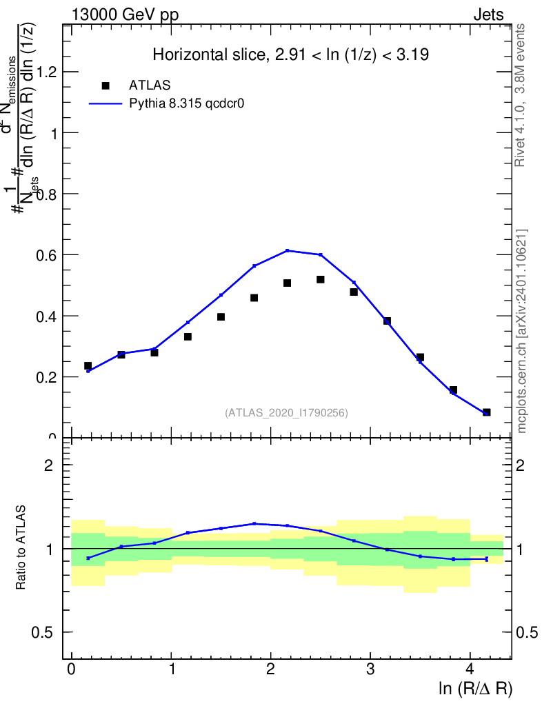 Lines: data, pythia8 8.315 qcdcr0 |