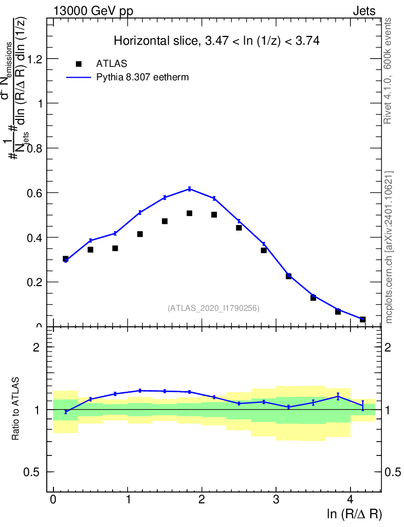 Lines: data, pythia8 8.307 eetherm |