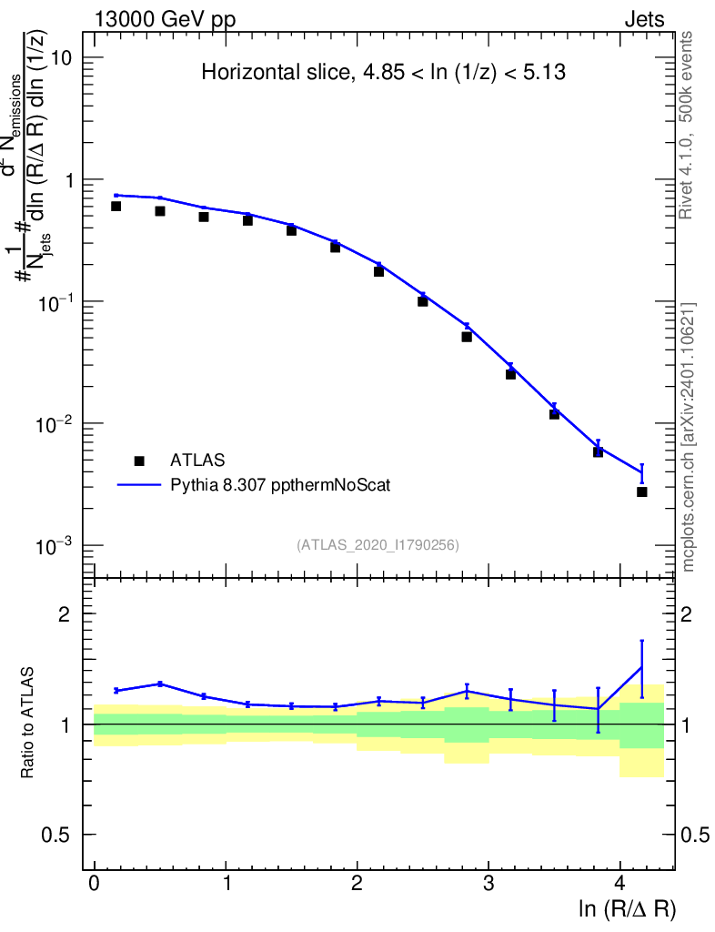 Lines: data, pythia8 8.307 ppthermNoScat |