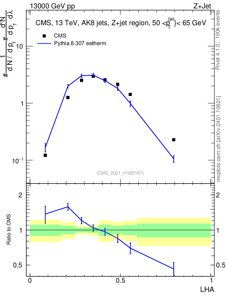 Lines: data, pythia8 8.307 eetherm |