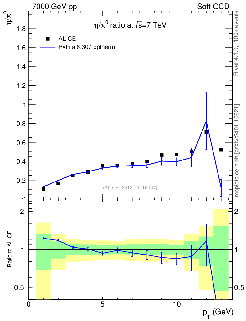Lines: data, pythia8 8.307 pptherm |