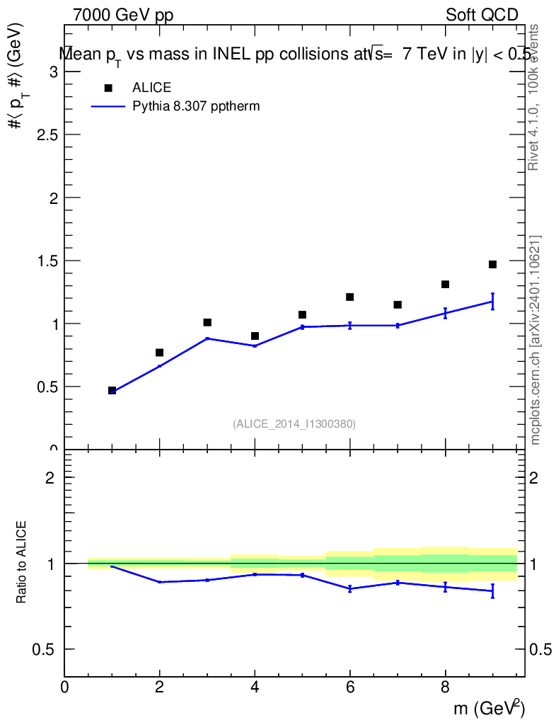 Lines: data, pythia8 8.307 pptherm |