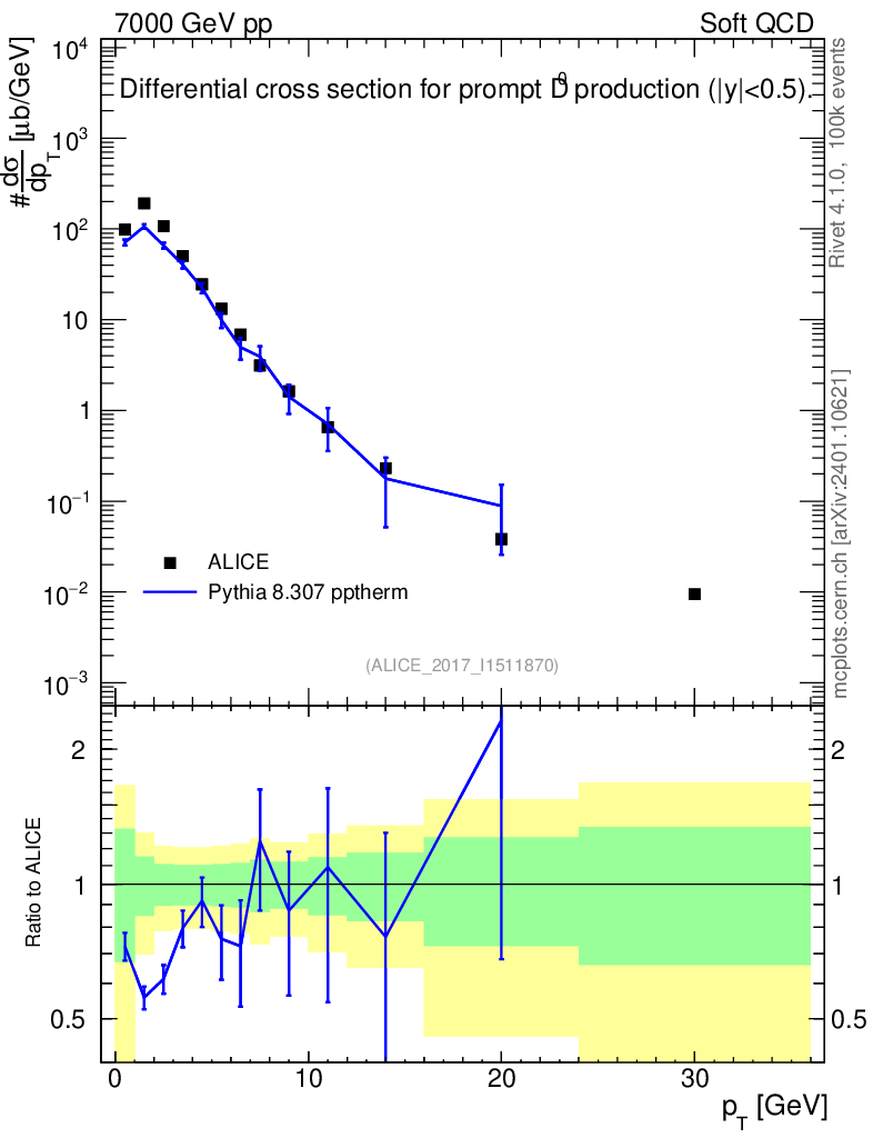 Lines: data, pythia8 8.307 pptherm |