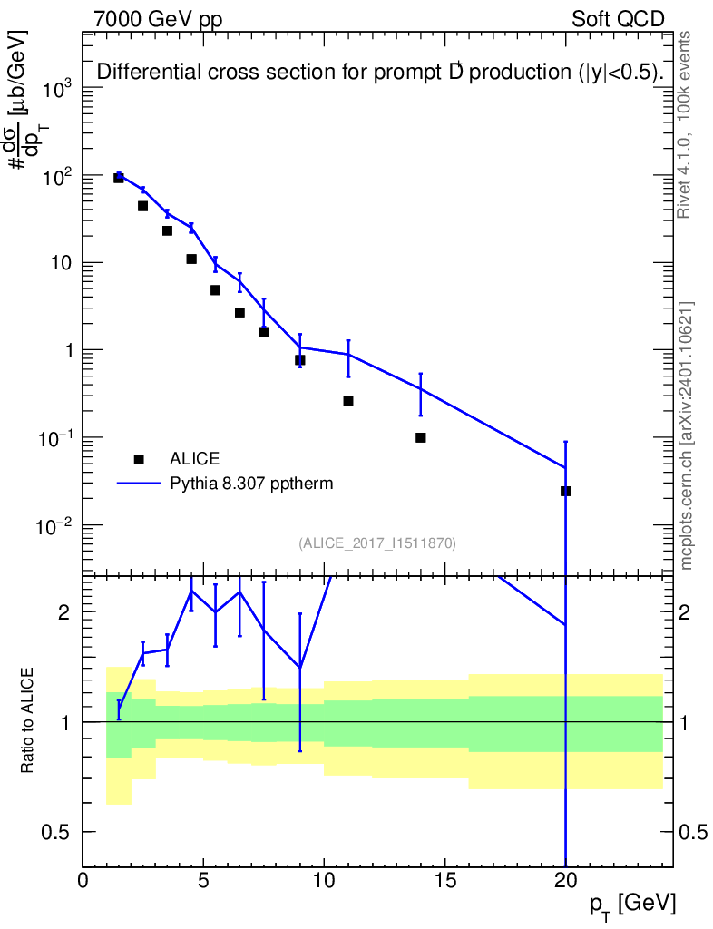 Lines: data, pythia8 8.307 pptherm |