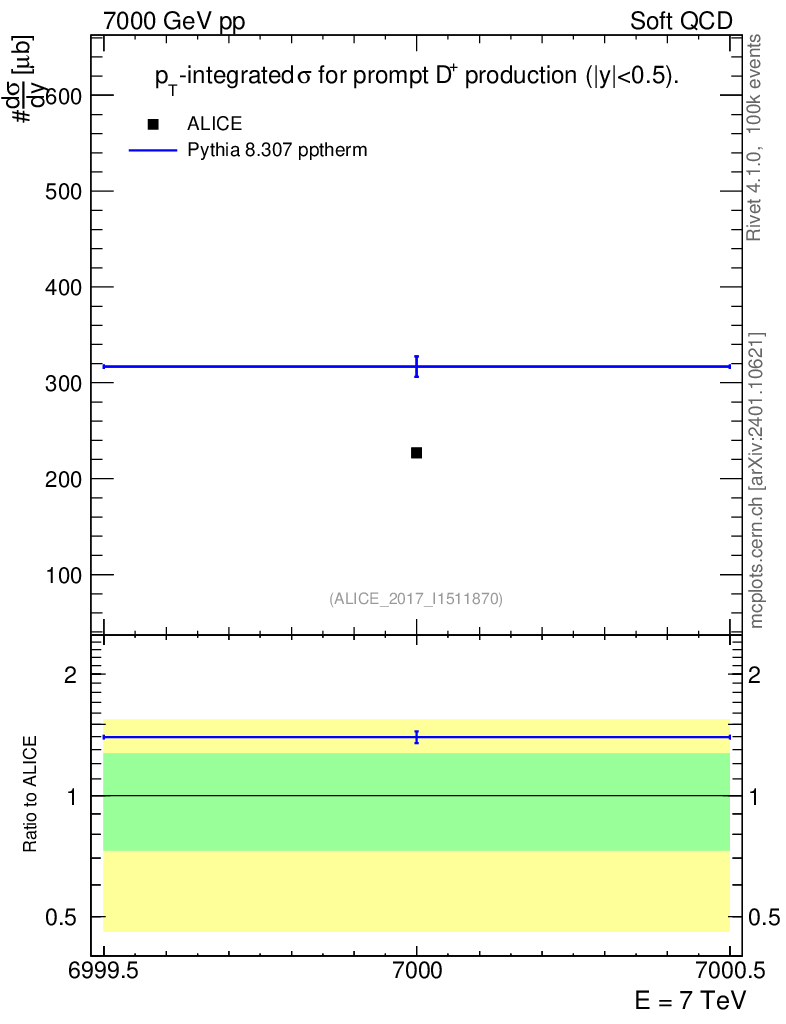 Lines: data, pythia8 8.307 pptherm |