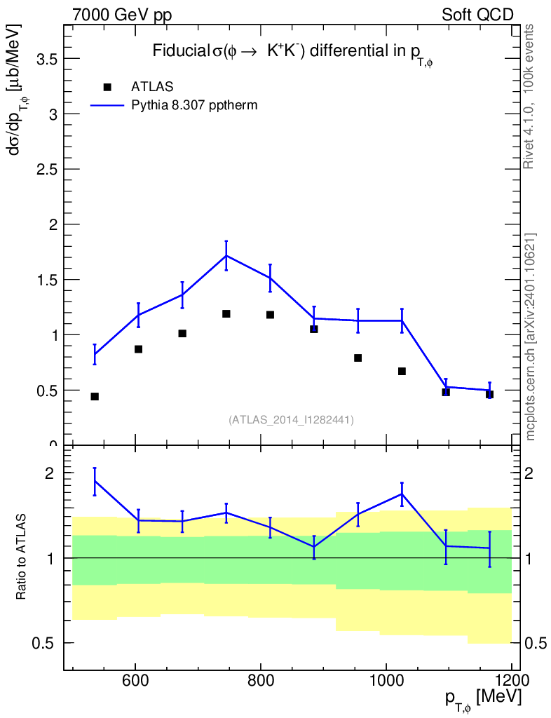 Lines: data, pythia8 8.307 pptherm |