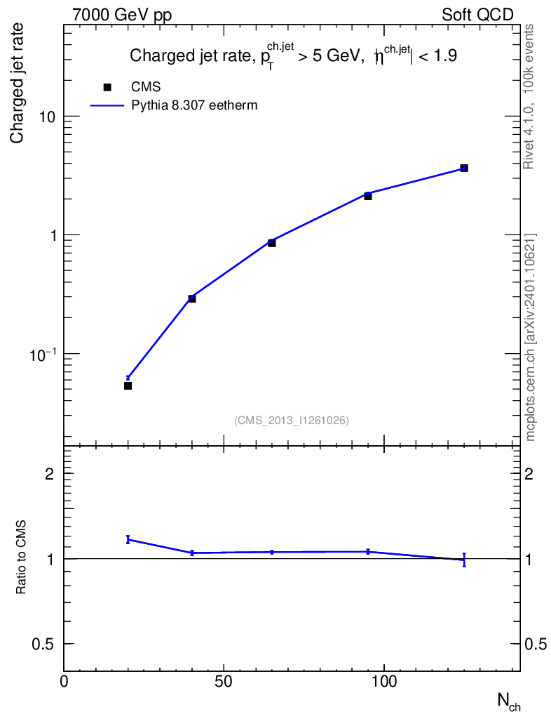 Plot of njets-vs-nch in 7000 GeV pp collisions