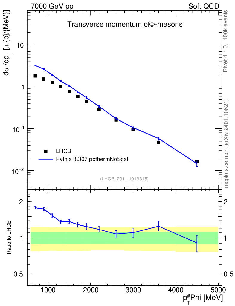 Lines: data, pythia8 8.307 ppthermNoScat |