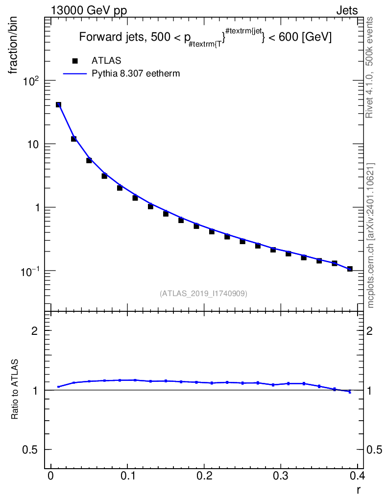 Lines: data, pythia8 8.307 eetherm |