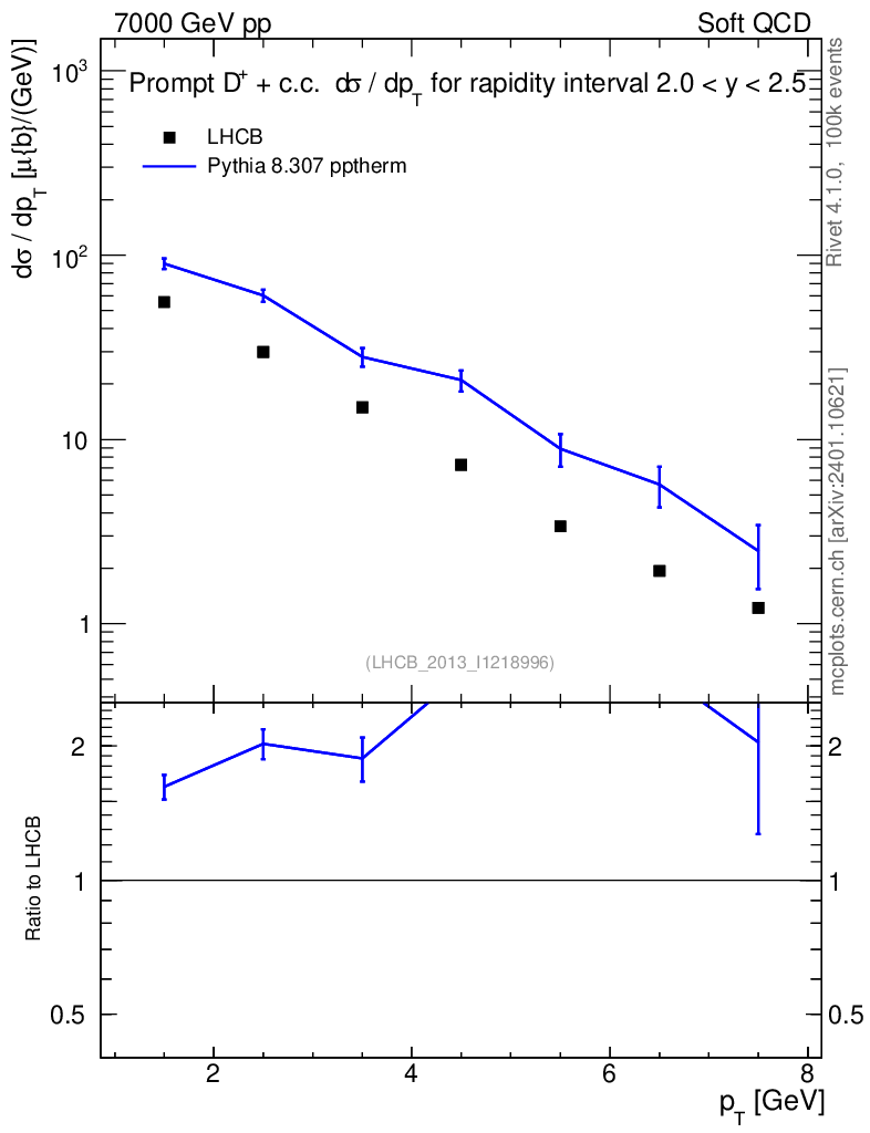 Lines: data, pythia8 8.307 pptherm |