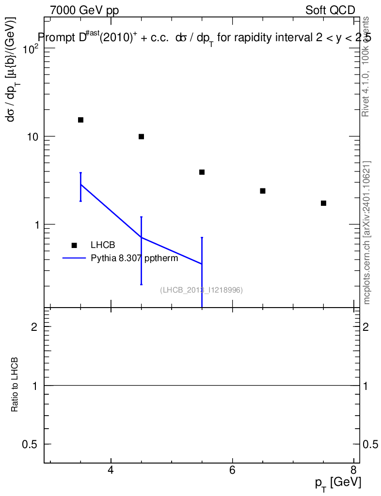 Lines: data, pythia8 8.307 pptherm |