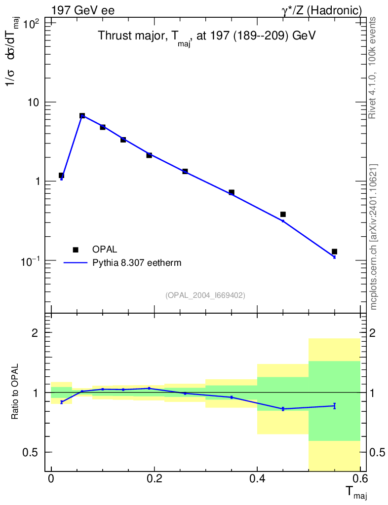 Lines: data, pythia8 8.307 eetherm |