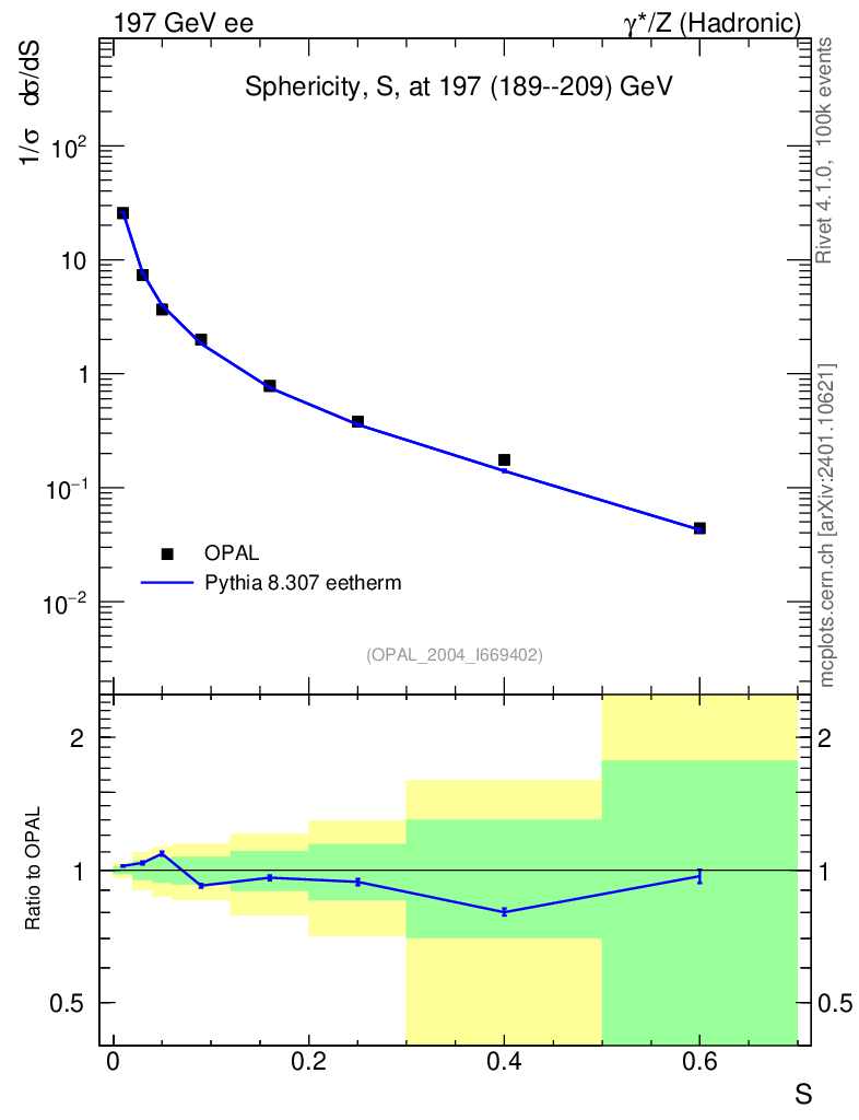 Lines: data, pythia8 8.307 eetherm |