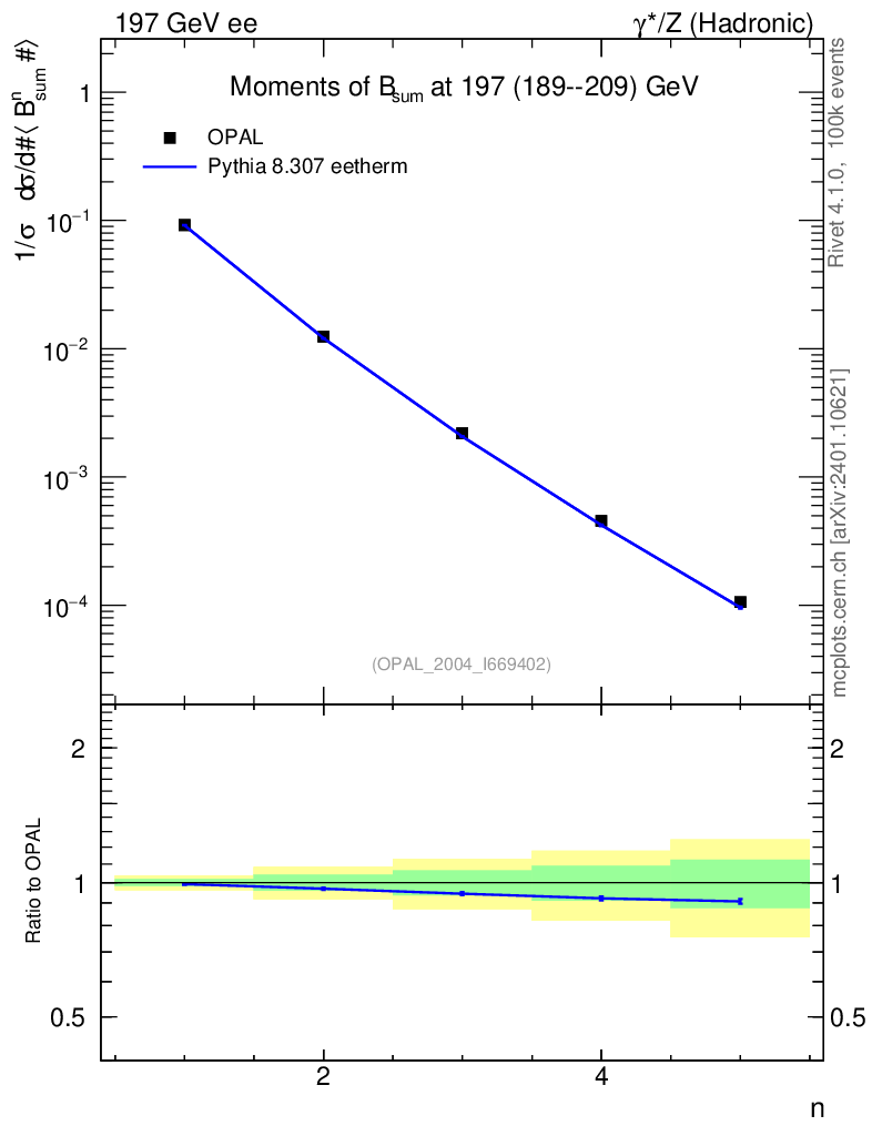 Lines: data, pythia8 8.307 eetherm |